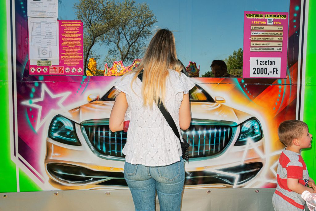 Már az egy érdekes dolog számomra, hogy tényleg ez az a program, amire a város lakói kikapcsolódásként vágynak? A dübörgő disco zene a dodgemek körül, ami távolodva a villogó fényekkel díszített játékoktól összemosódik a színpadon hallható ZS kategóriás előadók koncertjével? Vagy a napon, sörpadokon ülve inni a hideg Sopronit, amíg a gyerek meghallgatja az Alma együttes fellépését? Mi 4 órát töltöttünk el a majális első napján, és érdekesebbnél érdekesebb arcokkal, emberi sorsokkal találkozhattunk.