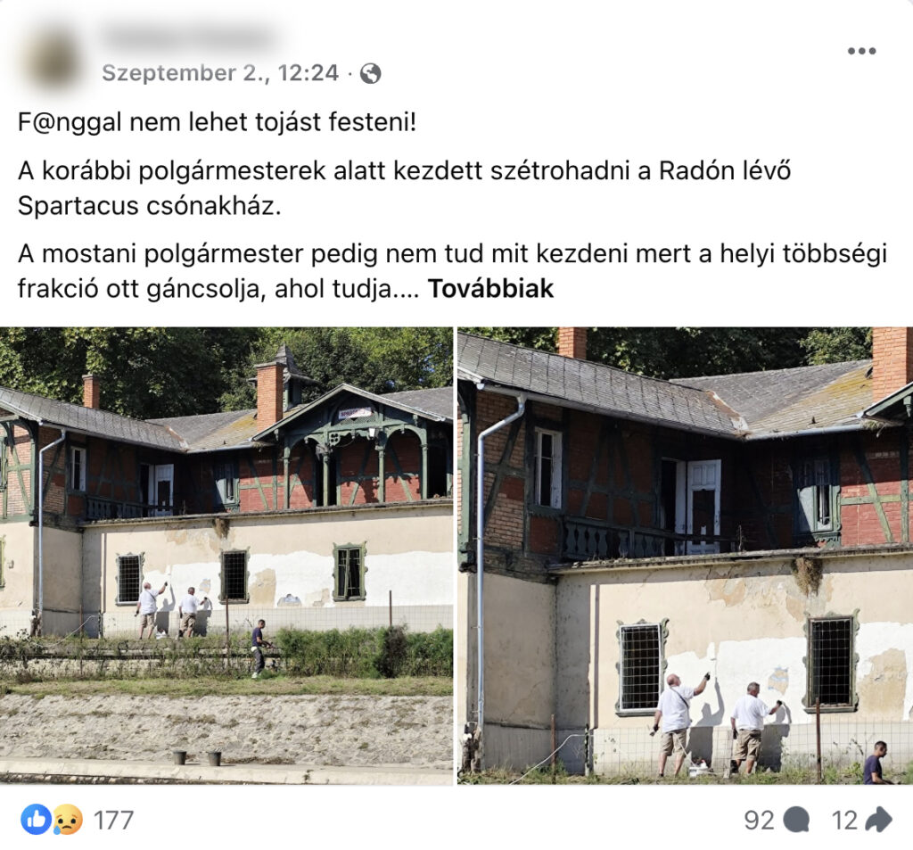Egészen a hét elejéig, amikor emberek jelentek meg a csónakháznál, s ahogy a Győr Összefog Facebook-csoportban láttuk is, festeni kezdték a falát. Sejthető volt a válasz, amit aztán Kósa Roland alpolgármester megerősített nekünk: a kajak-kenu vébével összefüggésben történtek a dolgok.