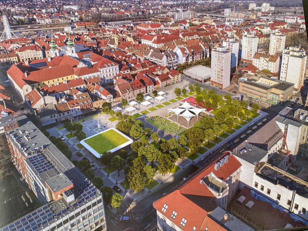 • Egy évre rá látványterveket is láttunk: „Már készülnek az új tervek a II. János Pál tér felújítására! Amellett, hogy sokkal zöldebb lesz a környezet, figyelünk arra is, hogy a szintkülönbségek a mozgásukban korlátozott embereknek se jelentsenek akadályt. A megújuló tér egyszerre lesz modern és elegáns. 45 éve, amikor a tér elkészült, a Győri Nemzeti Színház társulata mellett a Győri Balett is helyet kapott. Azt, hogy ez az épület azóta és jelenleg is mindkét társulat otthona, most a külsőségekben is megjelenítjük.” (Facebook/dr. Dézsi Csaba András, 2024. március 12.)
