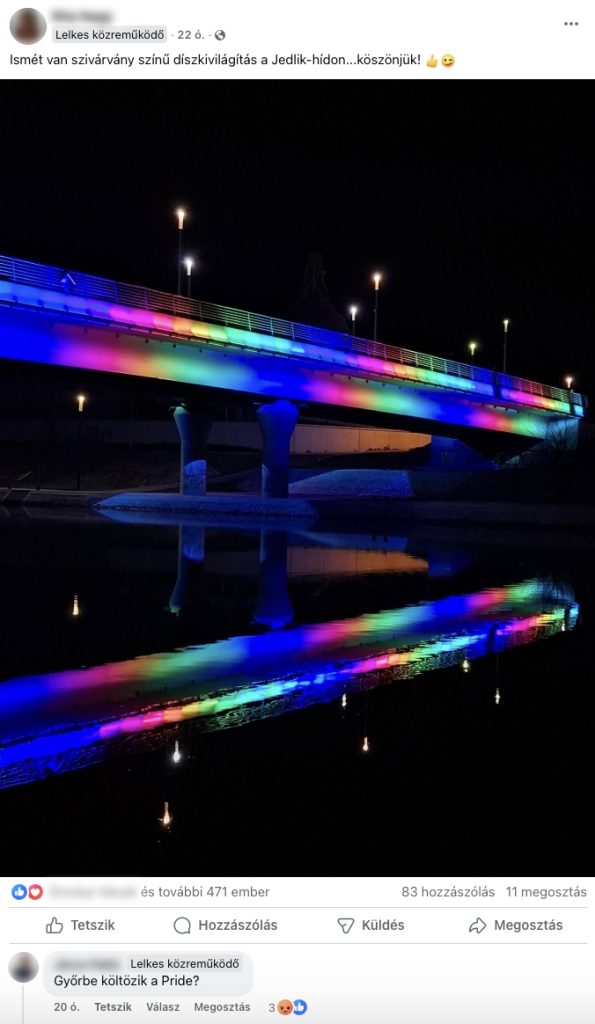 Voltak mendemondák azzal kapcsolatban, hogy miért kapcsolták le a szivárványos programot – nem elsősorban politikai, hanem egyházi szándékot emlegettek –, ezek a hangok most, a visszakapcsoláskor ismét felerősödtek. Facebook kommentekre nem alapozhatunk, nem is akarunk, de azért tűpontos képet rajzolnak a győri magyar közállapotokról. A fények visszakapcsolása ugyanis ezt hozta ki a Facebookon az emberekből (a helyesírási hibákat javítottuk előtte):