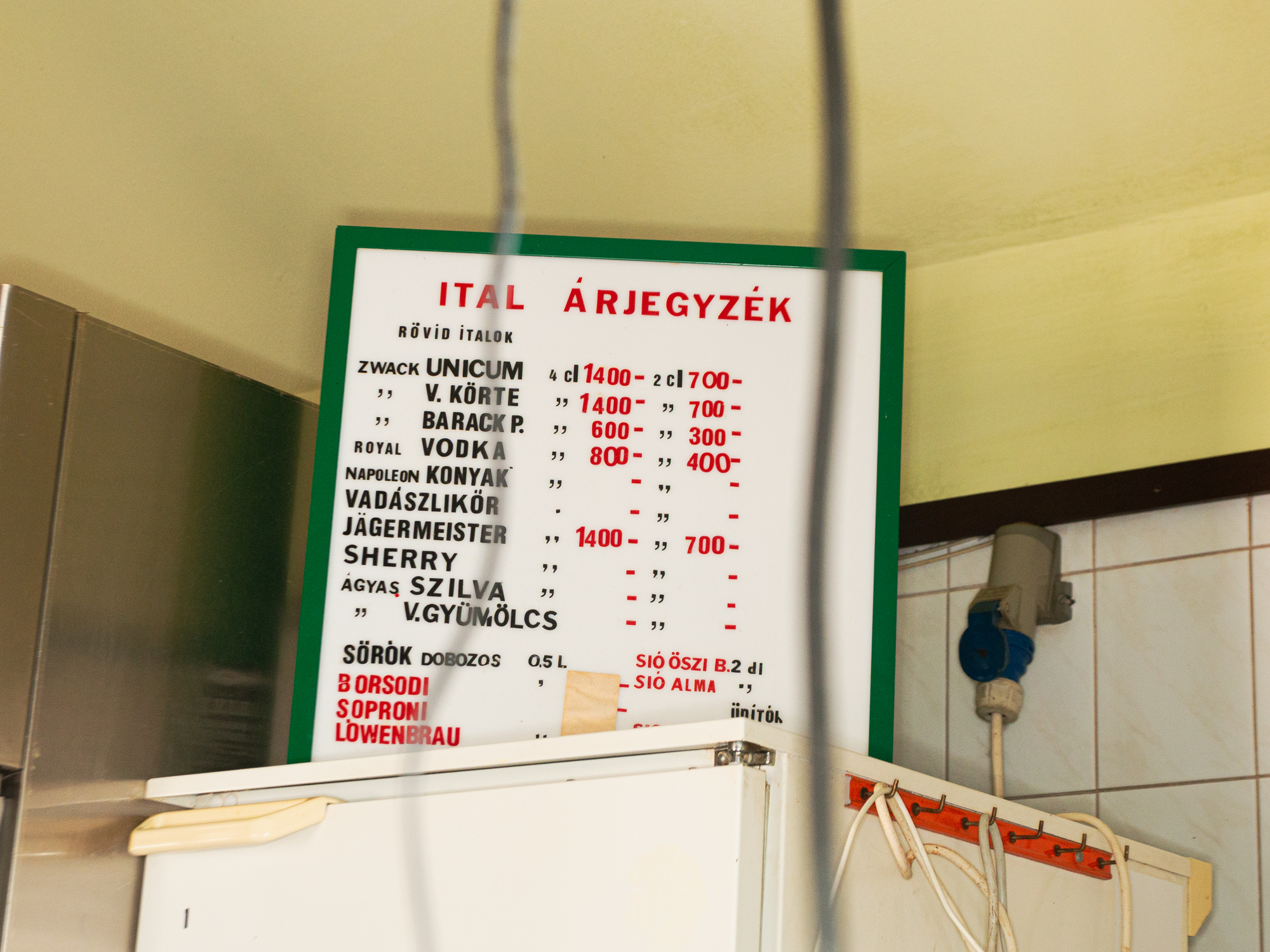 A fogadtatás rögtön barátságos, Márti szolgált ki minket, aki később a pecsenyesütő múltjáról és jelenéről is mesélt kicsit (a cikkben erre is kitérünk – a szerk.). Ilyenkor mindig jön a dilemma, hogy mit is válasszunk a sok finomság közül, s mire felocsúdok a bőséges kínálat látványából, szóban már a friss házi limonádénál tartunk, amit persze úgyszint megkóstoltunk.