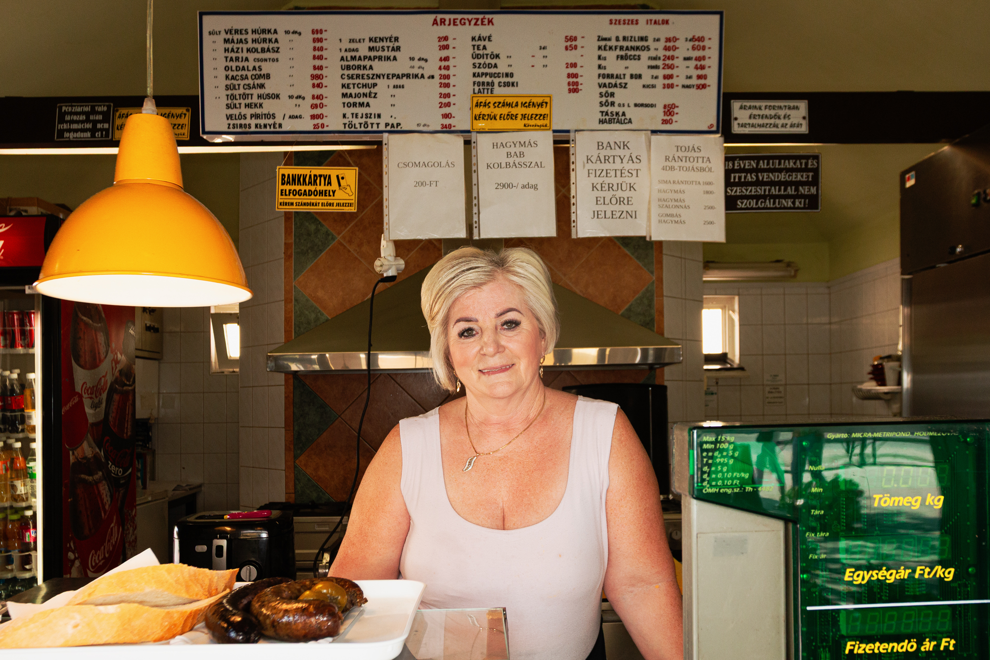 „117 éve működik ez a pecsenyesütő… persze nem mindig volt itt ebben a kis bódéban, anno lovaskocsiról árulták a sülteket.”– meséli Márti, aki a férjével viszi közösen az üzletet.