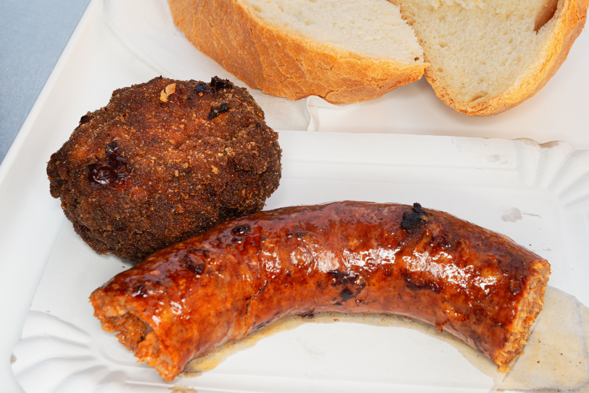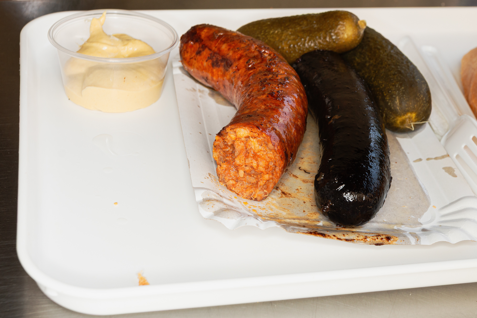 Végül kolbászt, véres és májas hurkát és fasírtot is kértünk, mellőlük pedig nem hiányozhatott a friss kenyér, mustár és a kovászos uborka sem. 3 főre mindez (és a 2 limonádé) 8 000 Ft-ba került, illetve a végén még egy kis pecsenyehúst is kaptunk ajándékba kóstolóként.