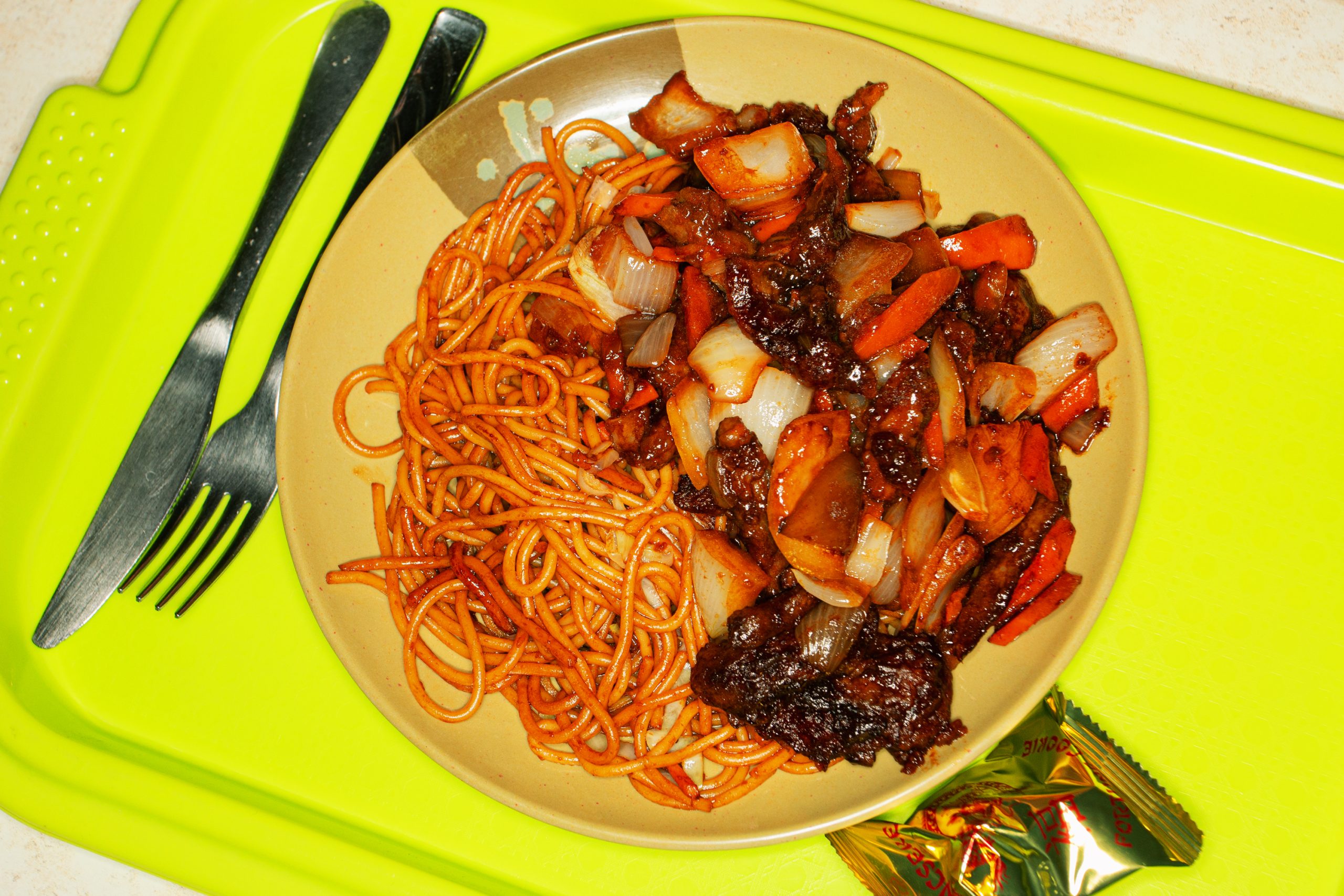 Az egyik menünkkel biztosra mentünk – hagymás kacsa zöldséges sült tésztával. Ezzel nem tudtak hibázni, minden nagyon finom volt, és a kis adag hús ezúttal is akkora mennyiséget jelentett, ami bőven kifogott rajtunk. A másik választásunk pedig a korábban említett sertéshúsgombócra esett szecsuáni szószban üvegtésztával. Amennyire a hagymás kacsa pozitív hatást gyakorolt ránk, ez annál inkább volt csalódás. Az üvegtészta túl sós, a húsgombóc pedig feltételezem, jól volt elkészítve, viszont nem igazán nyerte el tetszésünket. A mártás rendben volt, a gombóchoz hasonlót viszont még nem ettem. Egyfelől mintha nem is tipikus darált hús lett volna, hanem valami sokkal pépesebb, másfelől pedig nem tudtunk rájönni, hogy mivel lehet összekeverve, valamilyen darára tippeltünk, így az egész gombóc nagyon lágy volt (és egy kicsit sótlan is).