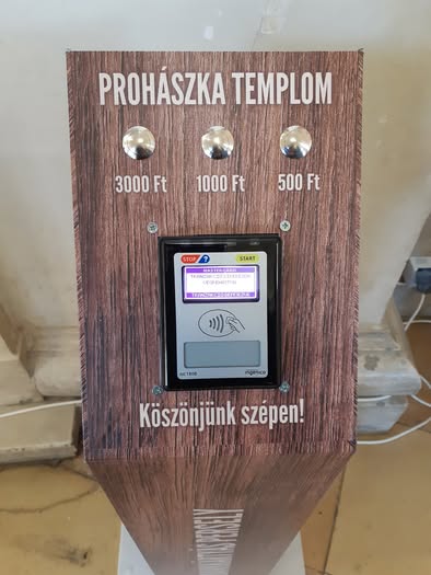 A POS-terminál többnyire a templomok bejáratánál van felszerelve (ahogy a győrinél is), ezen a hívek ki is választhatják, hogy mekkora összeget – 5, 10 vagy 50 lejt (egy lej ≈75 forint) – kívánnak adományozni.